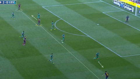 Ở phút thứ 26, tỉ số đã là 4-0 cho Barcelona. Thế trận tấn công của Barca từ đó nguy hiểm và khó lường hơn rất nhiều. Tata Martino cũng đưa Pedro trở lại và dùng anh đầy hiệu quả cùng với Messi và Alexis chơi rộng, giúp Barca dễ dàng kéo dãn hàng thủ Levante. Martino sử dụng anh na ná như Pep từng làm với Eto’o trước đây, giúp Cesc kết hợp ăn rơ với Messi vào tạo điều kiện cho trung phong người Argentina phát huy khả năng tốt nhất